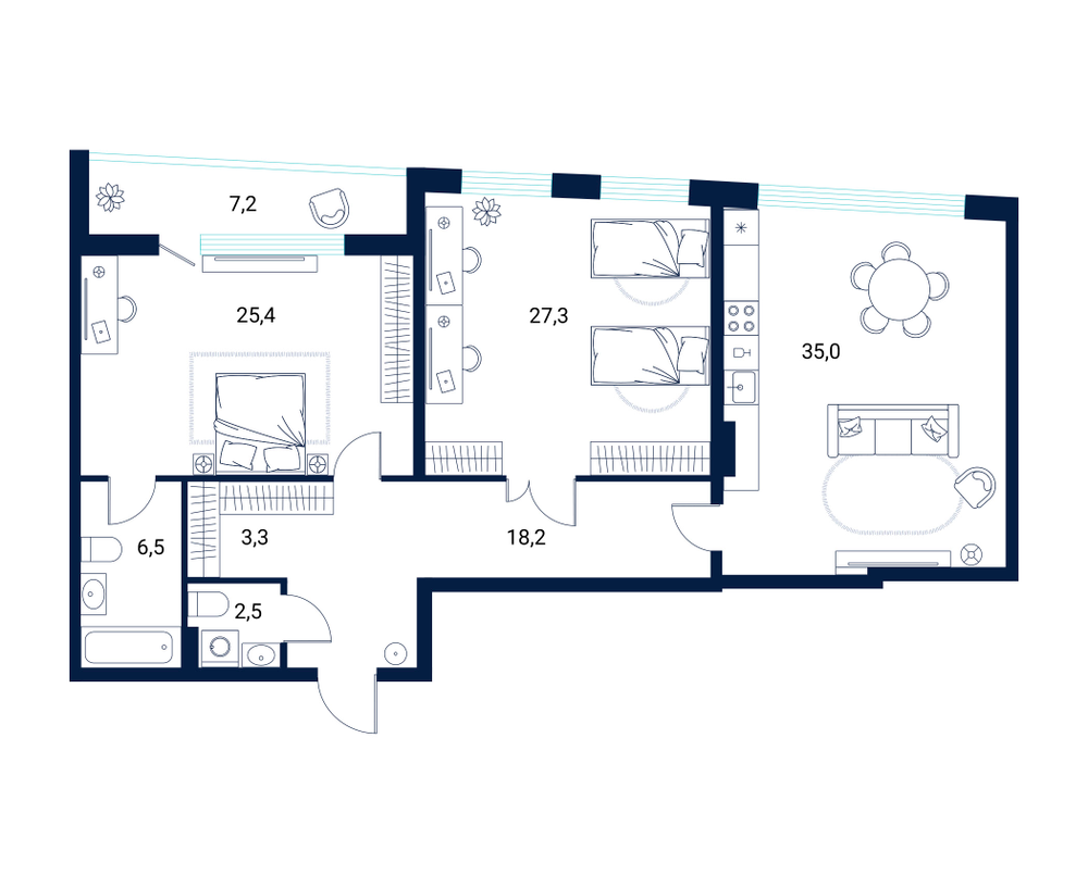 2-комнатная 118.1 м
