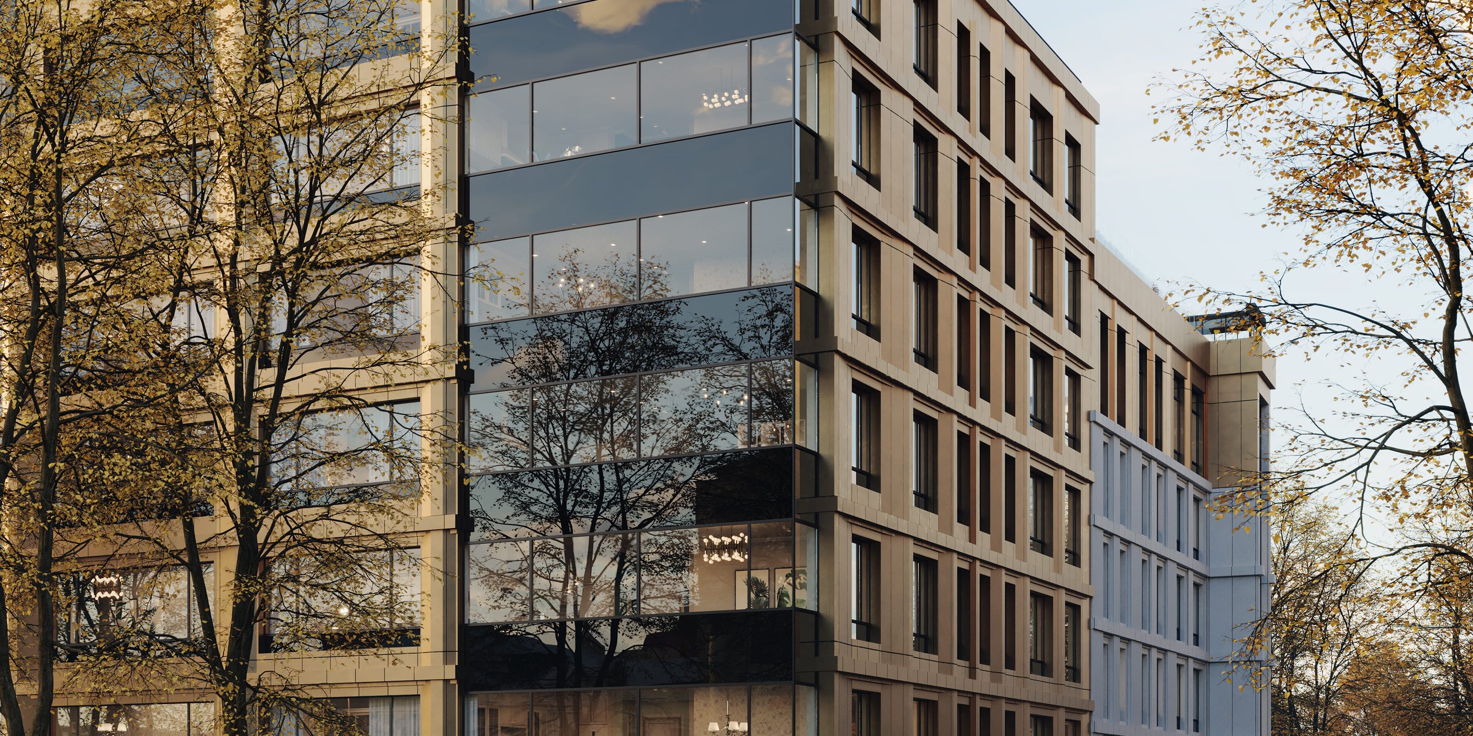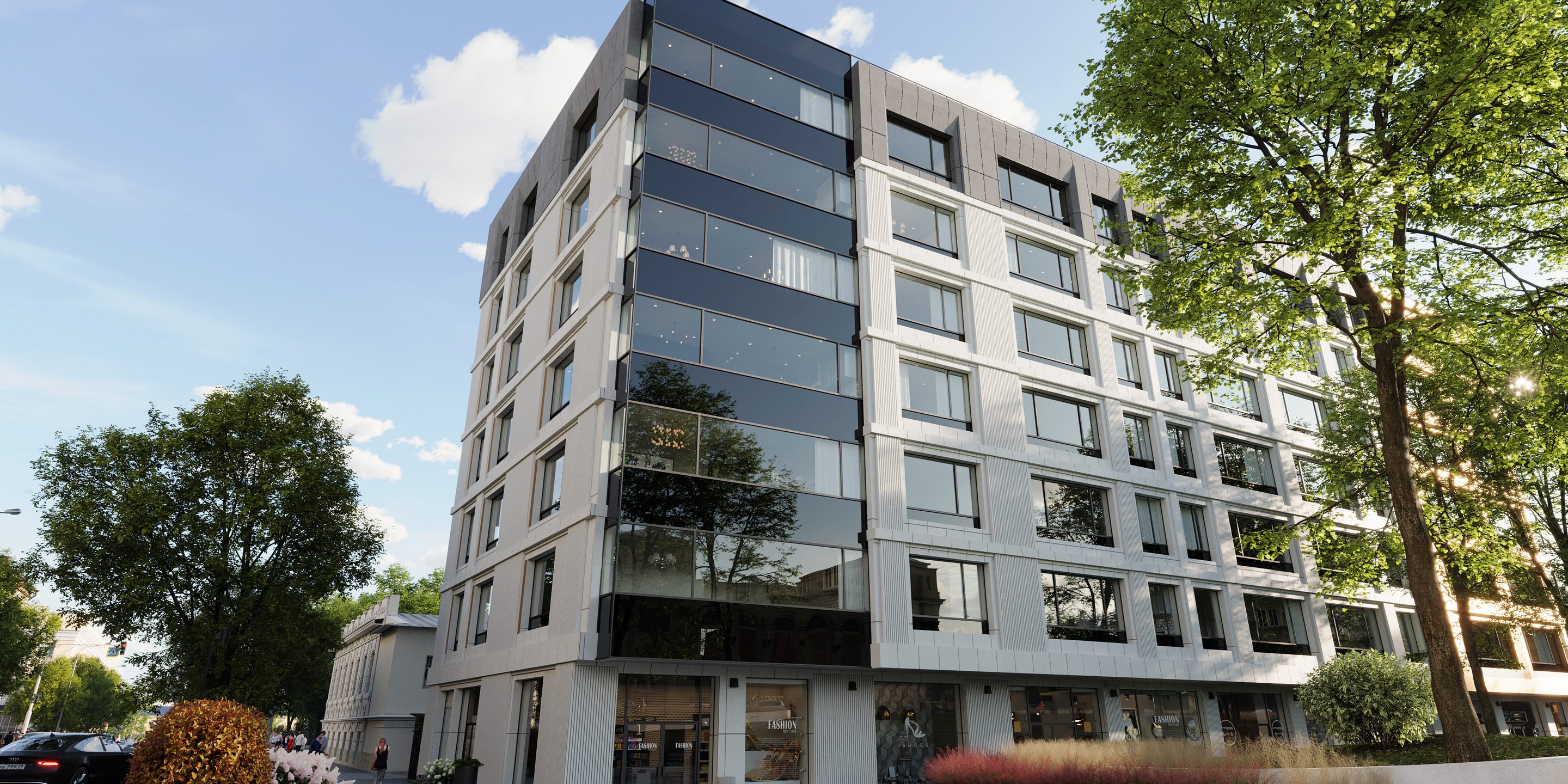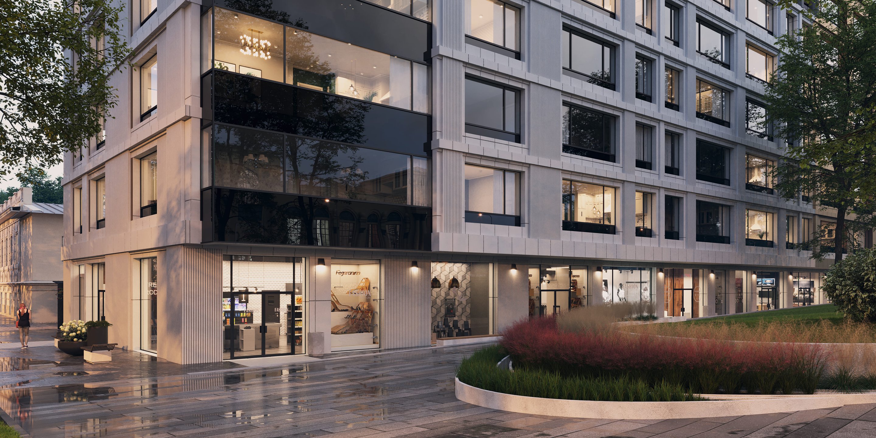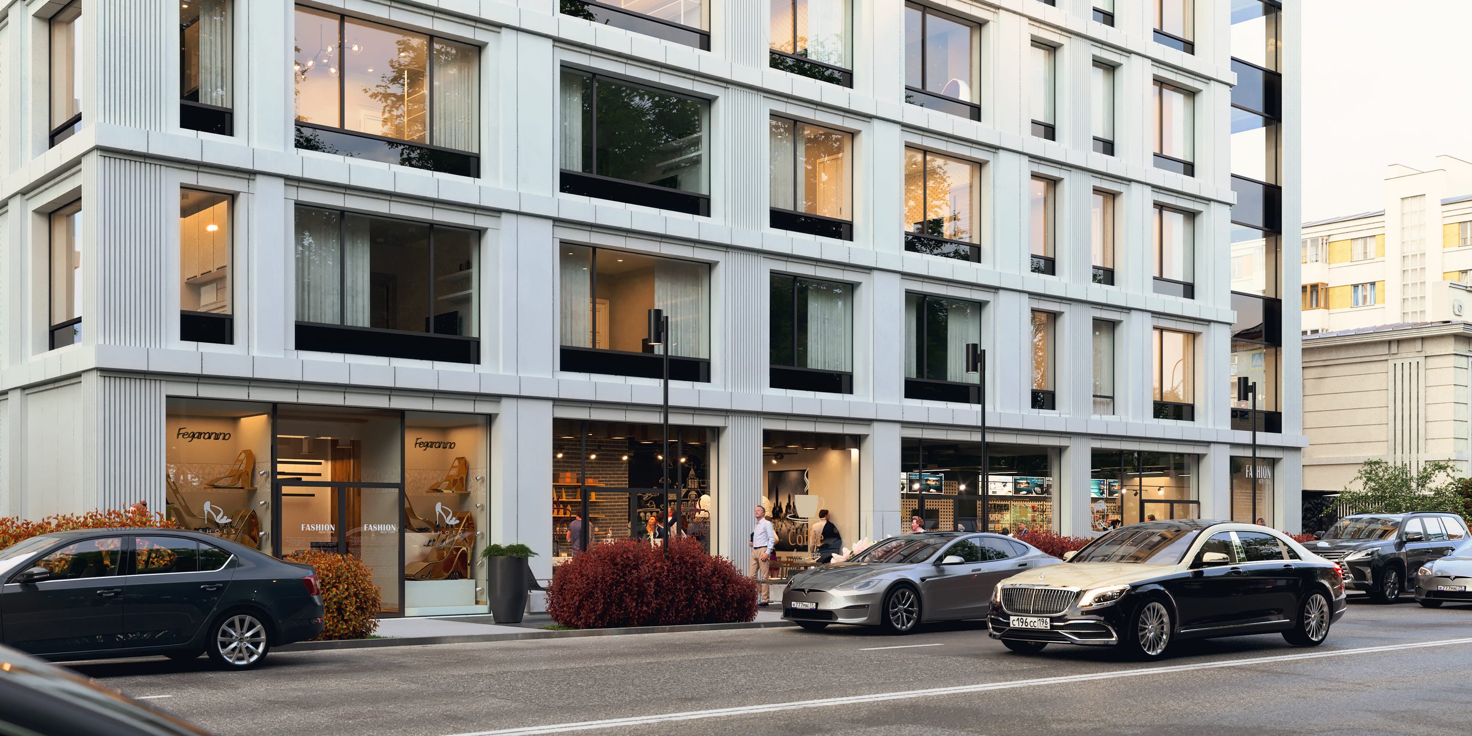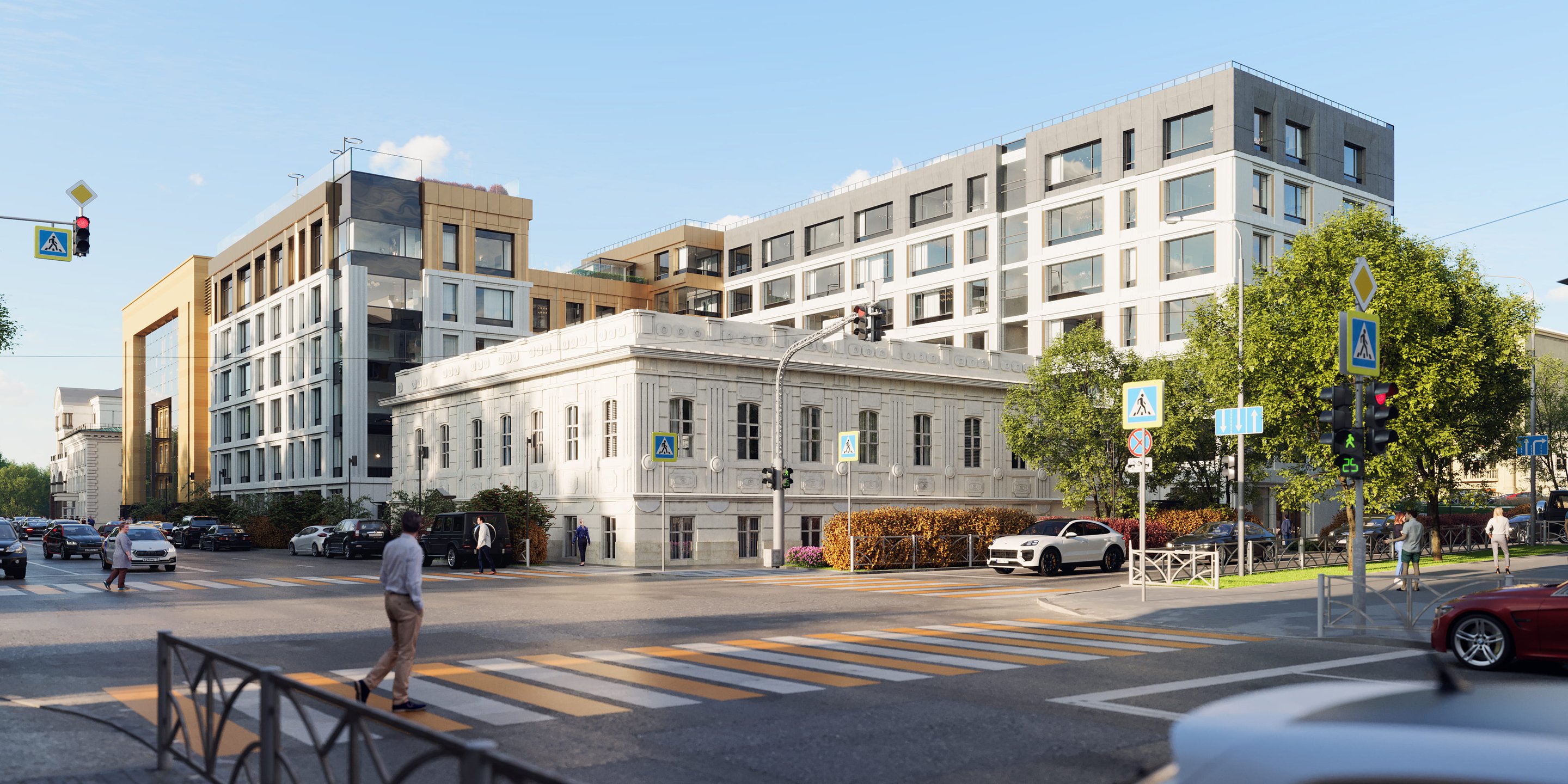 Изысканные архитектурные детали. Рустовые пояса придают внешнему виду монументальности. Жилой комплекс органично вписывается в существующую историческую застройку района.