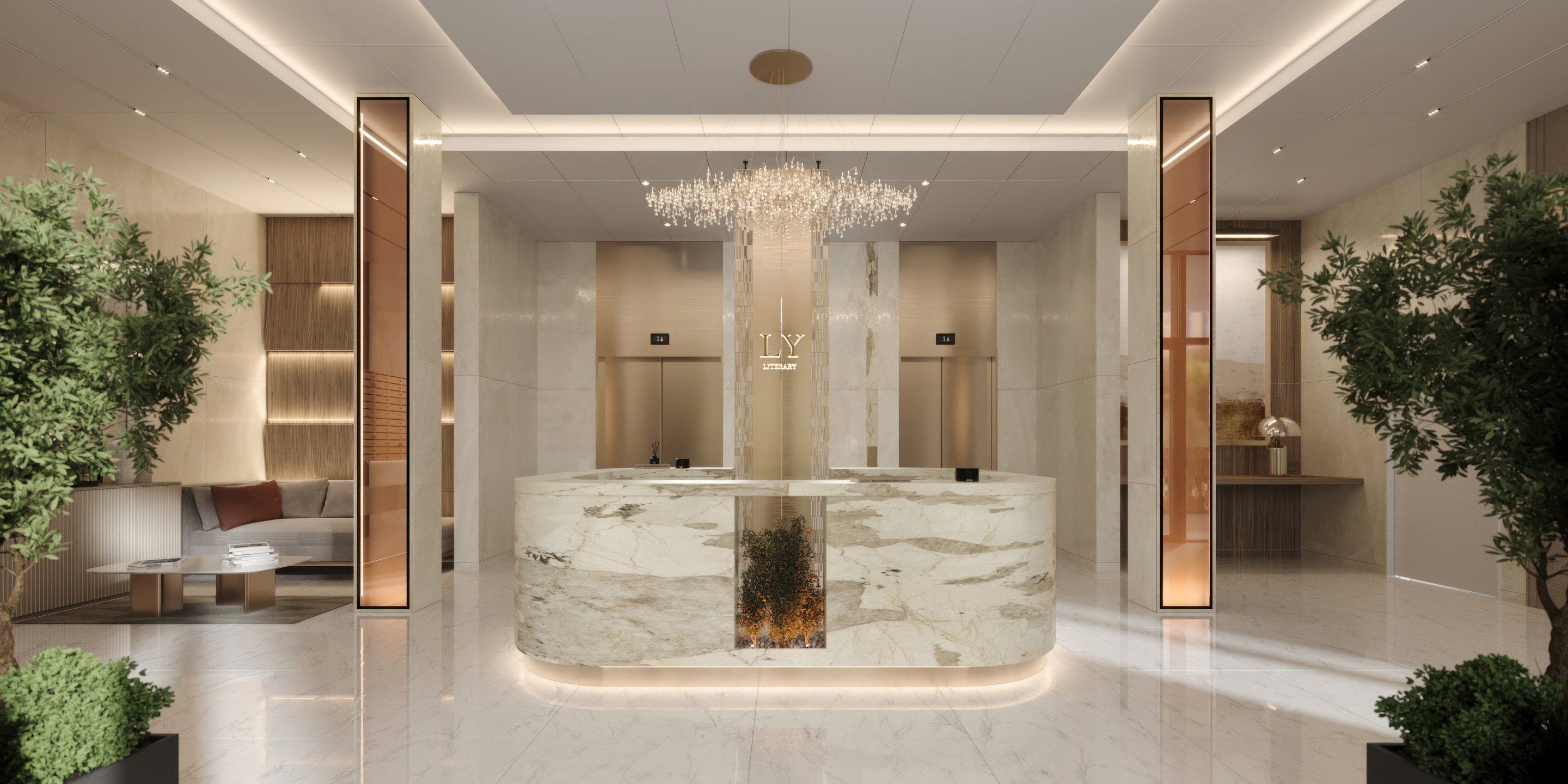 Пространство функционально зонированно. Стойки ресепшн и постоянная служба охраны.