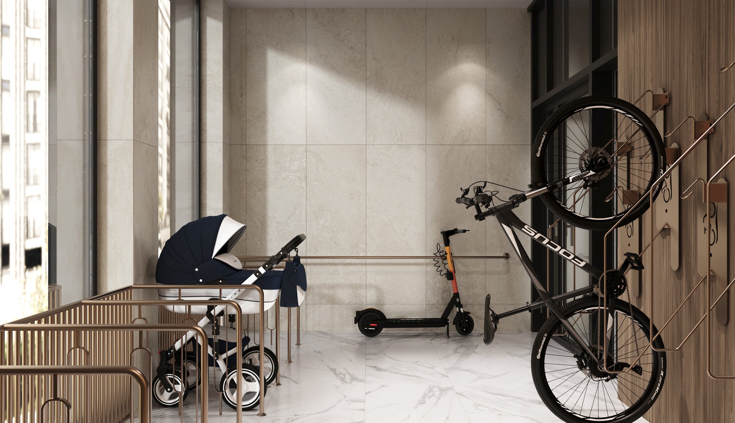 На первом этаже для удобства жителей расположены колясочные, а видеонаблюдение осуществляется 24/7.